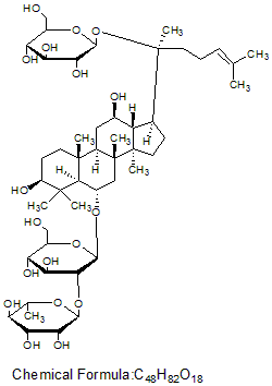 IUPAC name: (2S,3R,4R,5R,6S)-2-[(2R,3R,4S,5S,6R)-2-[[(3S,5R,6S,8R,9R,10R,12R,13R,14R,17S)-3,12-dihydroxy-4,4,8,10,14-pentamethyl-17-[(2S)-6-methyl-2-[(2S,3R,4S,5S,6R)-3,4,5-trihydroxy-6-(hydroxymethyl)oxan-2-yl]oxyhept-5-en-2-yl]-2,3,5,6,7,9,11,12,13,15,16,17-dodecahydro-1H-cyclopenta[a]phenanthren-6-yl]oxy]-4,5-dihydroxy-6-(hydroxymethyl)oxan-3-yl]oxy-6-methyloxane-3,4,5-triol