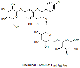 IUPAC name: 5-hydroxy-2-(4-hydroxyphenyl)-7-[(2S,3R,4S,5S,6R)-3,4,5-trihydroxy-6-(hydroxymethyl)oxan-2-yl]oxy-3-[(2S,3R,4S,5R,6R)-3,4,5-trihydroxy-6-[[(2R,3R,4R,5R,6S)-3,4,5-trihydroxy-6-methyloxan-2-yl]oxymethyl]oxan-2-yl]oxychromen-4-one